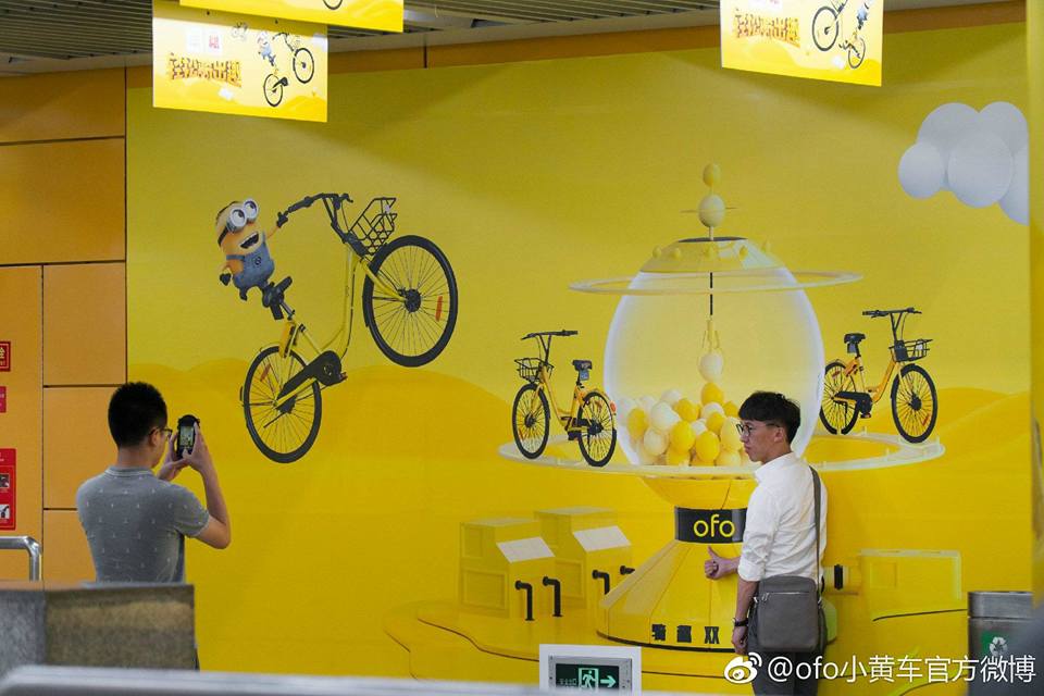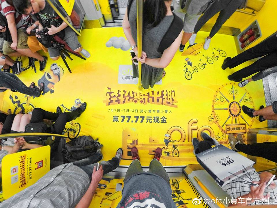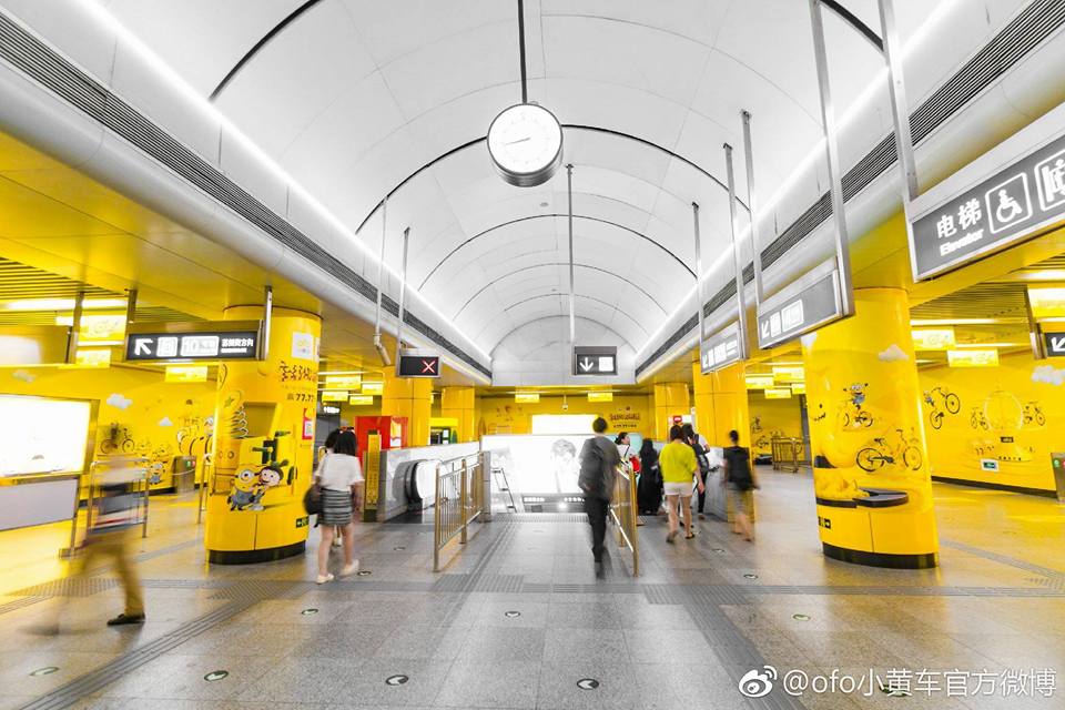 Ofo & มินเนี่ยน บุกปักกิ่ง! รถไฟใต้ดินปักกิ่งบางขบวนถูกตกแต่งในธีมสีเหลือง เพื่อโปรโมทโปรเจค แชร์จักรยานมินเนี่ยนของ Ofo ผู้ให้บริการแชร์จักรยานชื่อดัง โดยสถานีรถไฟใต้ดินสาย 4 สถานี ไห่เตี้ยนหวงจวง 海淀黄庄 ถูกตกแต่งด้วยธีมนี้เช่นกัน จนเหลืองไปทั่วสถานี ฮ่าๆ นี่ก็ถือเป็นการโปรโมทหนัง Despicable Me 3 ไปในตัวด้วย