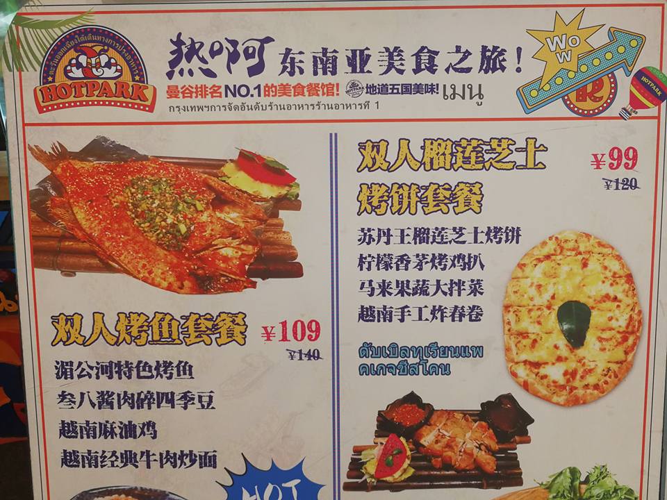 มาเจอร้านอาหารแห่งหนึ่งในซีอาน ชื่อว่า “Hotpark ตะวันออกเฉียงใต้เดินทางการปรุงอาหาร” ขายอาหารย่านอาเซียนและอาหารไทย แค่การตกแต่งร้านและภาษาไทยที่เขียน ก็สะดุดตาแล้ว ฮ่าาาา
