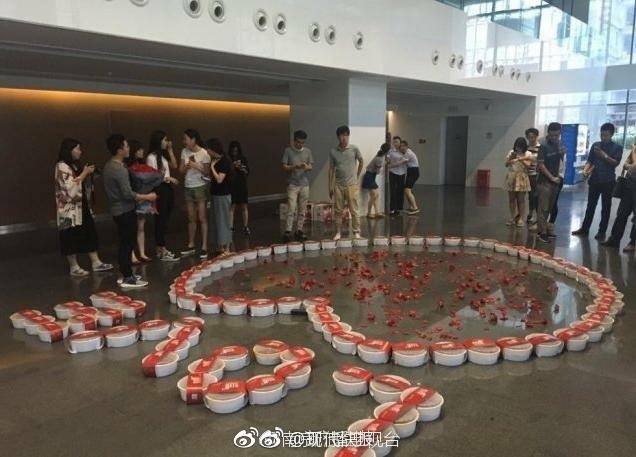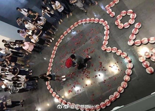 #ข่าวรอบดึก หนุ่มนักศึกษาจบใหม่เมืองหนานจิง ขอแฟนสาวที่คบกันมา 7 ปีแต่งงาน โดยใช้ กุ้งเครฟิช 99 กล่อง อาหารยอดฮิตของจีน และเป็นเมนูโปรดของแฟนสาว นำมาทำเป็นรูปหัวใจและข้อความ LOVE