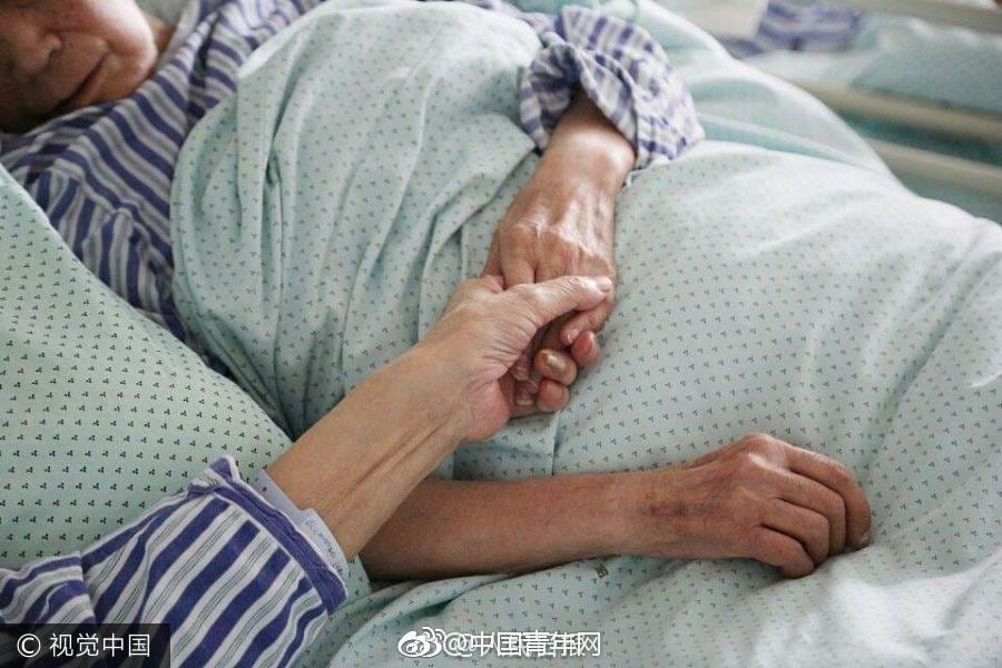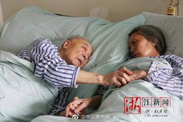คุณตาหลินเซิงฮว๋า วัย 91 ปี กระซิบข้างหูคุณยายคู่ชีวิต วัย 83 ปี พร้อมกุมมือไว้แน่น เพื่อเป็นกำลังใจให้กันและกันขณะพักรักษาตัวที่โรงพยาบาลในเมืองหนิงปัว มณฑลเจ้อเจียง โดยคุณตาหกล้มกระดูกเอวหัก ส่วนคุณยายล้มเช่นกัน โดยป่วยค่อนข้างหนัก ซึ่งแม้คุณตาเองก็ป่วย แต่ก็คอยมาดูแลและให่กำลังใจคุณยายอยู่ไม่ห่าง