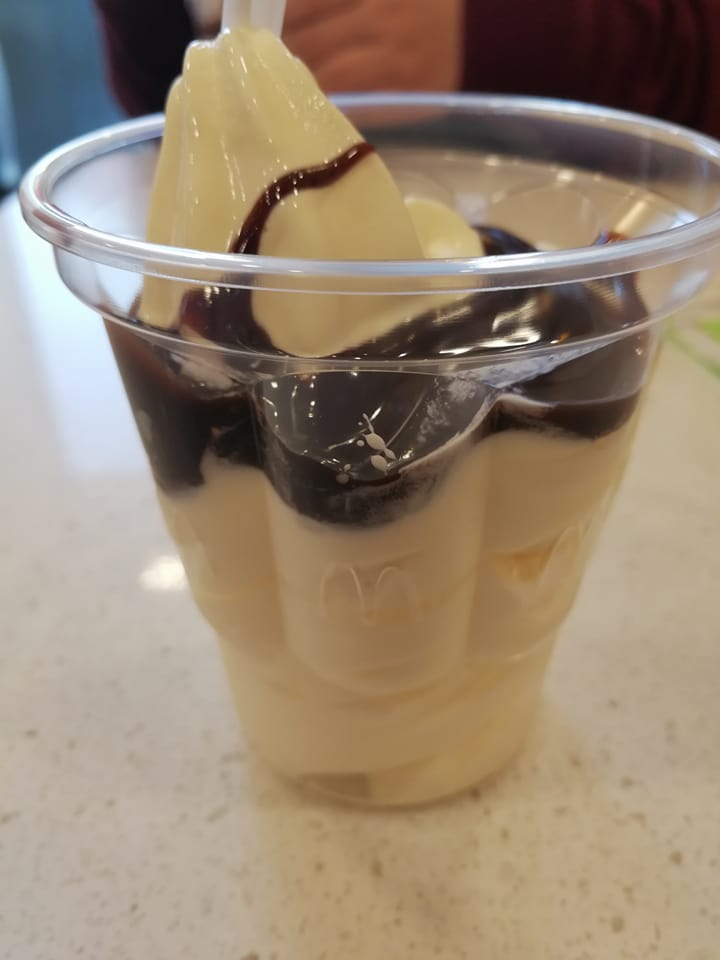 วันนี้อ้ายจงเริ่มดีขึ้นจากอาการป่วย ความอยากของหวาน อยากกินไอศกรีมก็บังเกิด จึงดิ่งมาที่แมคโดนัลด์แถวบ้าน คือตอนนี้มีไอศกรีมรสชีส แบบว่าชอบฮะ มีทั้งแบบโคน และแบบซันเด ราดช็อกโกแลต แต่อ้ายจงคิดว่า แบบโคนอร่อยกว่า ตอนนี้แมคโดนัลด์ที่จีน ไอศกรีมซื้อชิ้นต่อไปครึ่งราคาด้วยฮะ