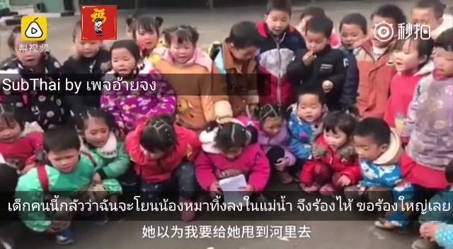 เด็กคนนี้ เป็นเด็กนักเรียนอนุบาลในเขตชนบทของเมืองสุ้ยหนิง มณฑลซื่อชวน (เสฉวน) เมื่อวันที่ 7 เมษายนที่ผ่านมา เด็กคนนี้เก็บน้องหมาจากข้างทางได้ จึงใส่กระเป๋ามาที่โรงเรียน ..ร้องไห้หนักมาก โดนคุณครูจับได้ กลัวคุณครูทิ้งน้องหมาลงแม่น้ำ
