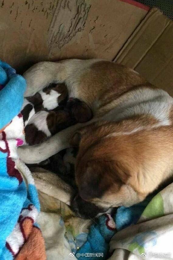 เมื่อเร็วๆนี้ ที่วิทยาลัยศิลปะและวิทยาศาสตร์แห่งเฉิงตู มีหมาจรตัวหนึ่งเข้่ามาใช้พื้นที่ในวิทยาลัยเป็นบ้่านพักพิงสำหรับออกลูกและดูแลลูกน้อย ซึ่งเจ้าหน้าที่รักษาความปลอดภัยของวิทยาลัยมาเจอโดยบังเอิญ จึงหากล่องพร้อมผ้ามาทำเป็นที่พักอันแสนอบอุ่นให้กับหมาจรแม่ลูกอ่อน และเขายังนำแนวกั้นของตำรวจ มากั้นบริเวณนั้น เพื่อไม่ให้ใครเข้าไปรบกวนหรือทำร้ายหมาจรอีกด้วย