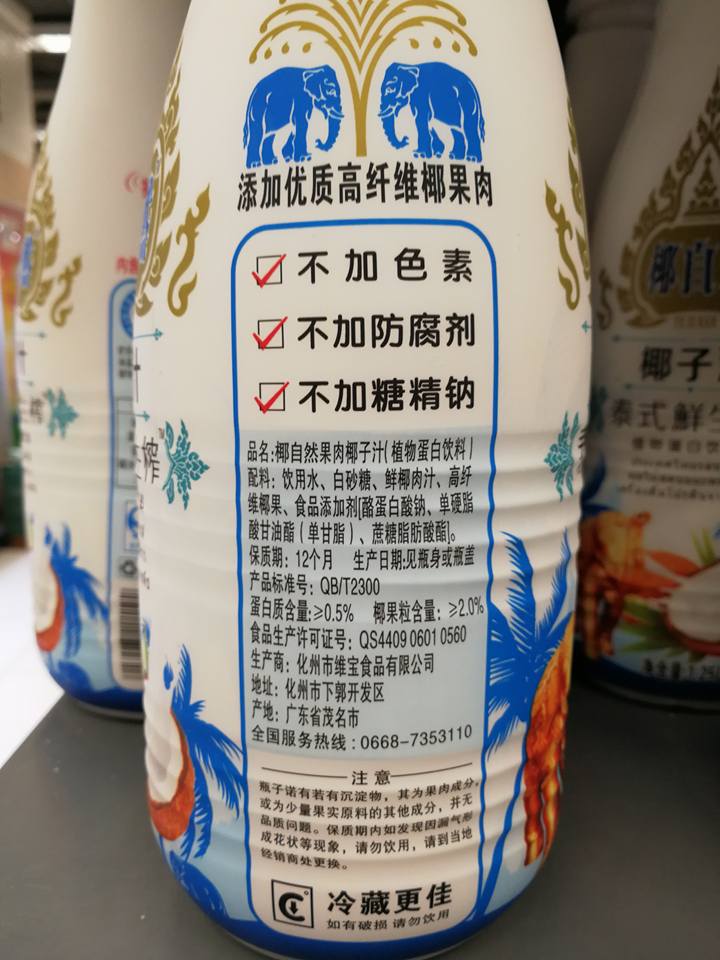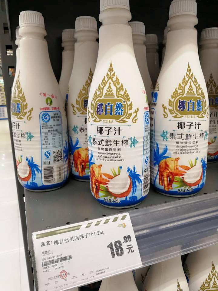 สินค้าไทยเป็นที่นิยมมากในจีน แม้จะไม่ใช่สินค้าที่ผลิตในไทยหรือโดยคนไทยก็ตาม …ขอแค่มีภาษาไทย มีอะไรแบบไทยไทย ก็เป็นที่สนใจแล้ว โดยเฉพาะของกิน หรือผลไม้ไทย อย่างเช่นสิ่งนี้ “น้ำมะพร้าว” แต่น้ำมะพร้าวของจีนจะแตกต่างจากไทยนิดหน่อย ตรงที่เขาดื่มแบบข้นกว่าของไทย ออกแนวน้ำกะทิ แต่เจือจาง ดังนั้นจึงไม่ต้องแปลกใจเลยว่า ทำไมเคยมีข่าวว่า คนจีนมาไทยแล้วดูดน้ำกะทิกล่อง แบบเอร็ดอร่อยสุดๆ …เพราะเขาดื่มกันแบบนี้มานานแล้ว