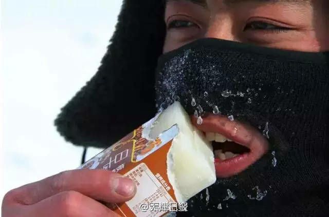 โซเชียลจีนแห่แชร์รูปทหารจีนที่กำลังจะดื่มนมกล่อง ณ ค่ายทหาร ท่ามกลางอากาศหนาวเหน็บ แต่นมกลายเป็นน้ำแข็ง และผ้าปิดปากก็เต็มไปด้วยหยดน้ำแข็ง ทำให้การดื่มนมที่ดูจะเป็นเรื่องง่ายๆกลายเป็นเรื่องลำบากขึ้นมาทันที