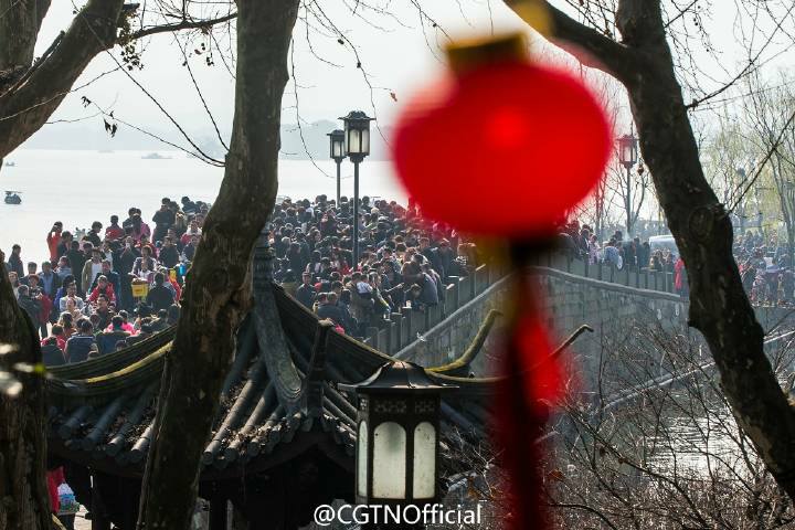 西湖 ทะเลสาบซีหู เมืองหังโจว มณฑลเจ้อเจียง สถานที่ท่องเที่ยวชื่อดังของจีน เต็มไปด้วยนักท่องเที่ยว กว่า 5แสนคน ในวันตรุษจีน 28 มกราคม