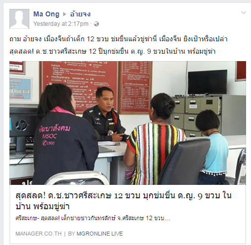 พอดีมีแฟนเพจส่งคำถามมาถามอ้ายจง เกี่ยวกับข่าวในไทยเมื่อสองวันก่อน ว่าถ้าที่ประเทศจีน ในกรณีที่เด็กอายุ 12ปี ข่มขืน แล้วขู่จะฆ่าด้วย มีความผิดอย่างไร ?