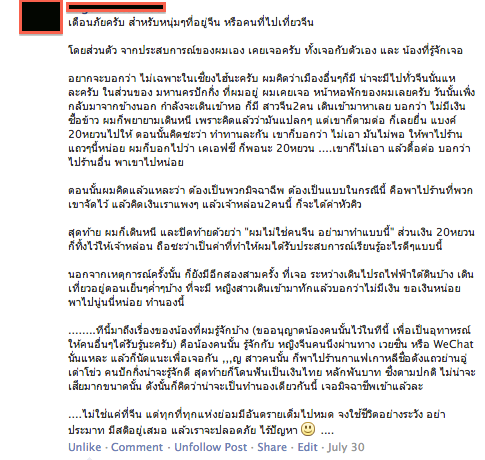 ปอลิง โพสนี้เป็นโพสที่อ้ายจงโพสไว้ใน timelineส่วนตัว ตั้งแต่ ก.ค.ที่ผ่านมา เลยขอแชร์มาเป็นอุทาบรื้ออออ (อุทาหรณ์ ฮ่าๆ) ให้กับทุกคนได้ระมัดระวังกัน