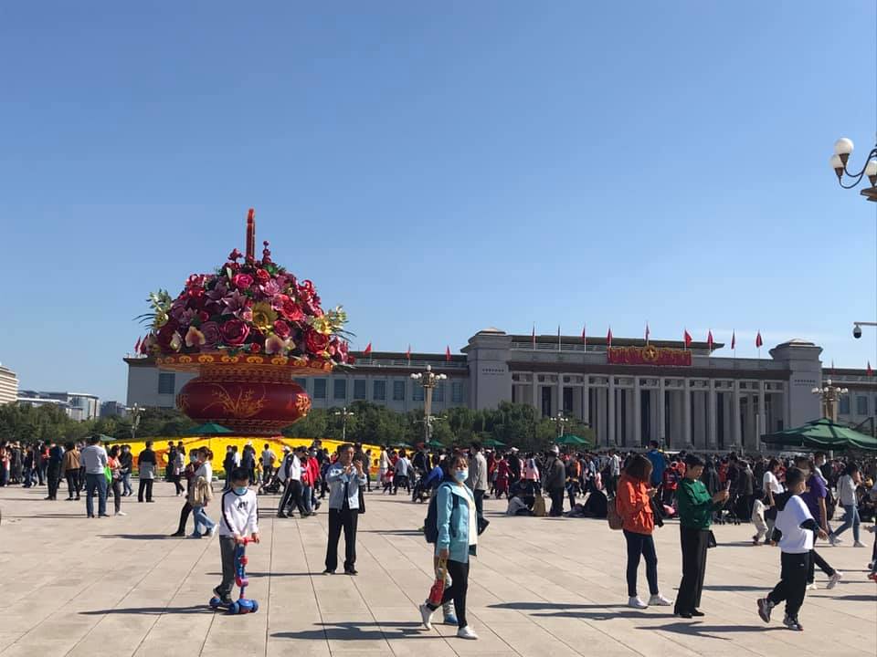 วันที่ 1 ตุลาคม เป็นวันชาติจีน ที่กรุงปักกิ่ง มีการจัดตั้งถังดอกไม้ขนาดใหญ่หลายแห่งเพื่อสร้างบรรยากาศคึกคัก เฉลิมฉลองวันชาติจีน นอกจากตะกร้าดอกไม้ขนาดใหญ่ที่ตั้งอยู่จัตุรัสเทียนอันเหมินแล้ว ยังมีถังดอกไม้อีกหลายแห่งกระจายในสองฝั่งถนนฉางอันเจีย ชาวปักกิ่งนิยมไปชมและถ่ายรูปเป็นที่ระลึก ถังดอกไม้เหล่านี้ ล้วนมีความหมายแอบแฝนอยู่ รวมทั้งการอนุรักษ์สิ่งแวดล้อม ผลงานการพัฒนาเศรษฐกิจ ผลงานการพัฒนาเทคโนโลยี และสวัสดิการณ์ของชาวบ้านทั่วไป เป็นต้น ผิงผิงก็ได้ไปเที่ยวจัตุรัสเทียนอันเหมินมาแล้ว ชอบมากค่ะ เนื่องจากปัจจุบันยังมีมาตรการควบคุมโควิด-19 เพื่อความปลอดภัยของทุกคน นักท่องเที่ยวส่วนใหญ่เป็นชาวจีน ฉะนั้น สถานที่ท่องเที่ยวต่างๆ จึงไม่แน่นเกินไป การเดินทางท่องเที่ยวมีความสะดวกสะบาย