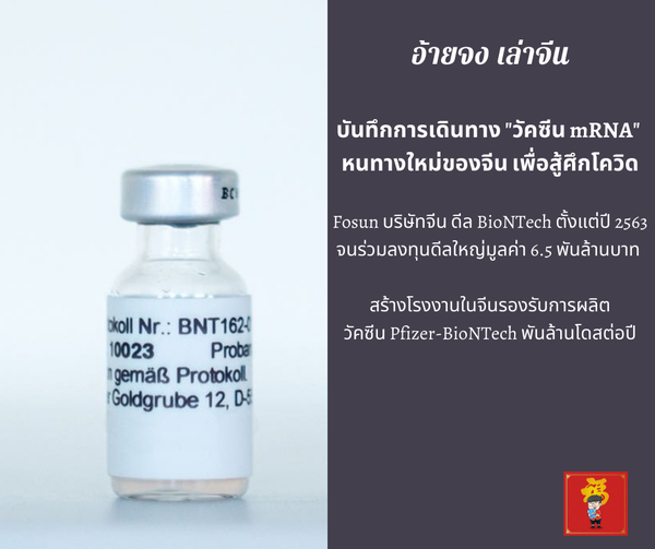 บันทึกการเดินทาง “วัคซีน mRNA” หนทางใหม่ของจีน เพื่อสู้ศึกโควิด: Fosun บริษัทจีน ดีล BioNTech ตั้งแต่ปี 2563 จนร่วมลงทุนดีลใหญ่มูลค่า 6.5 พันล้านบาท สร้างโรงงานในจีนรองรับการผลิต วัคซีน Pfizer-BioNTech พันล้านโดสต่อปี