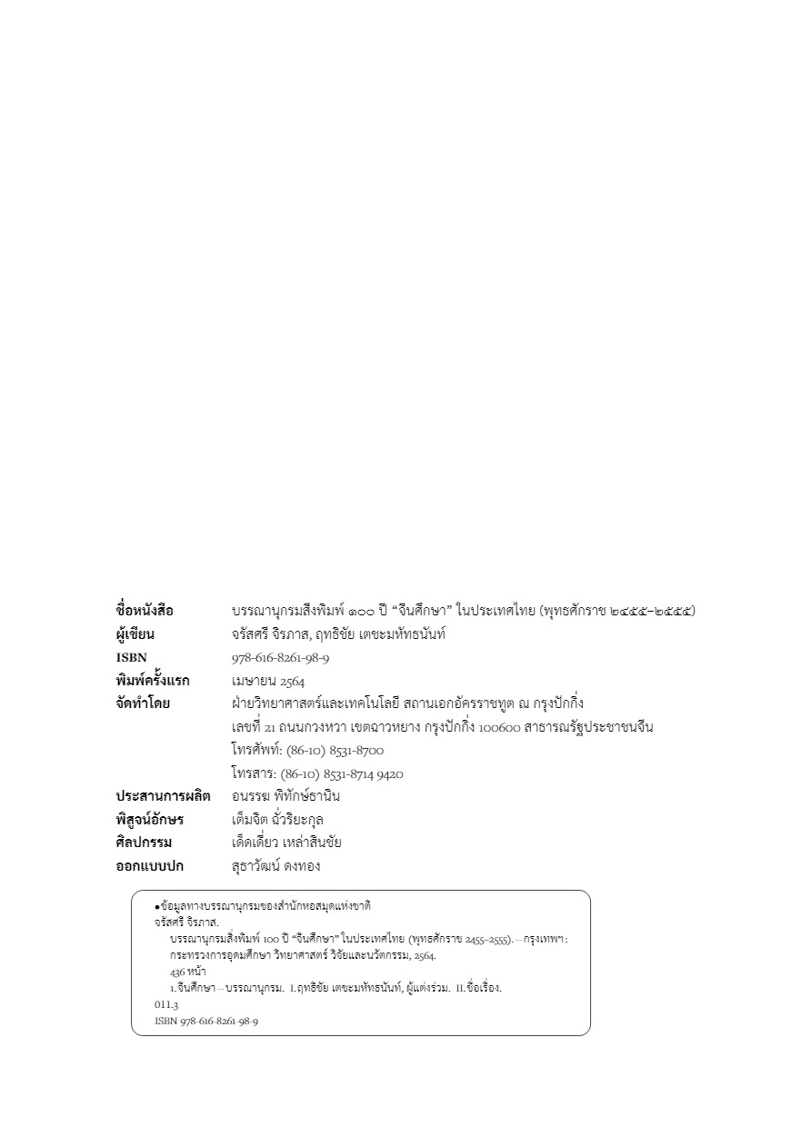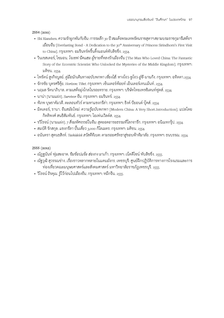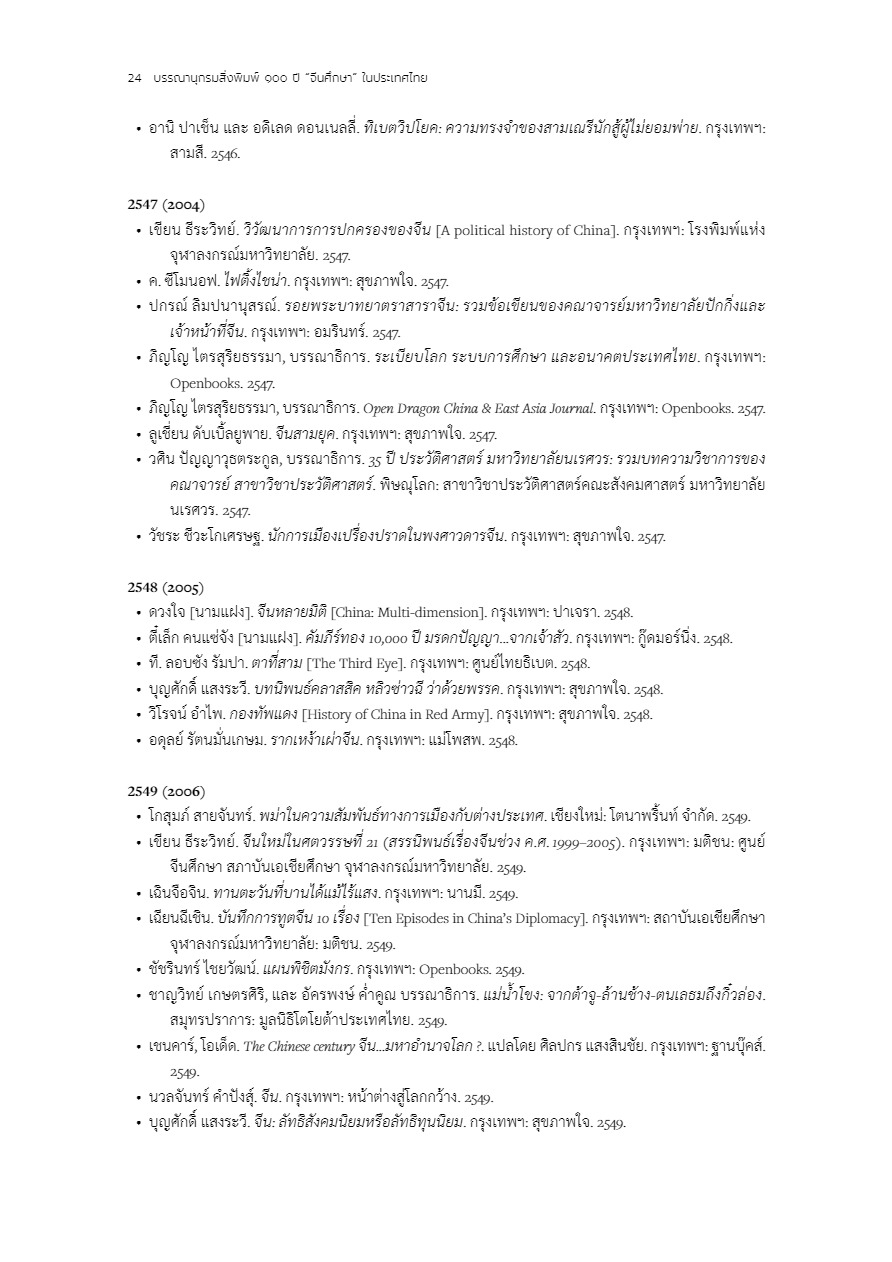 บรรณานุกรมสิ่งพิมพ์ 100 ปี “จีนศึกษา” ในประเทศไทย