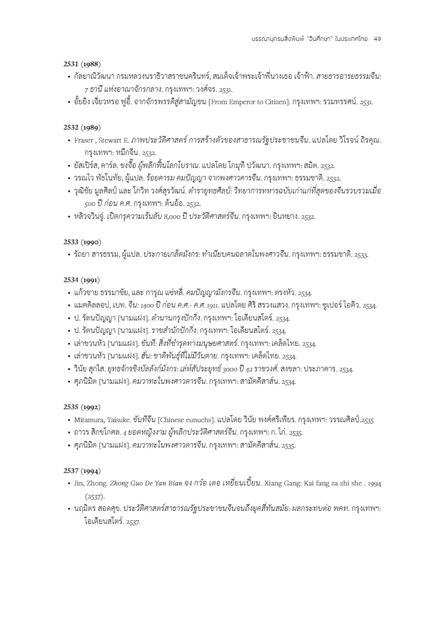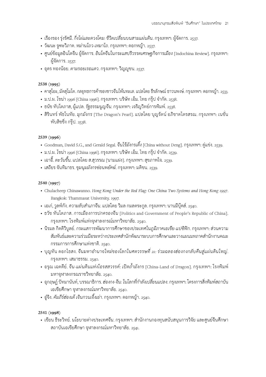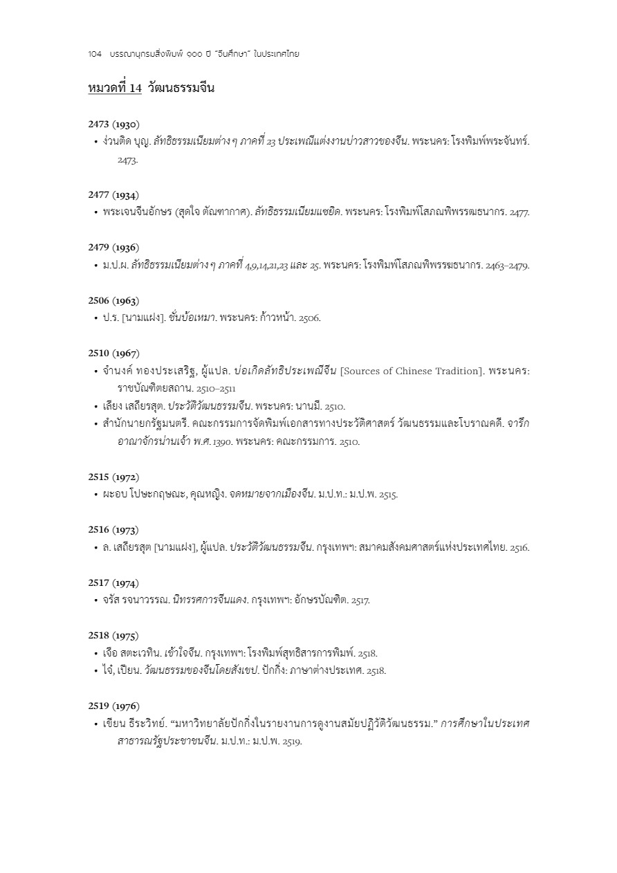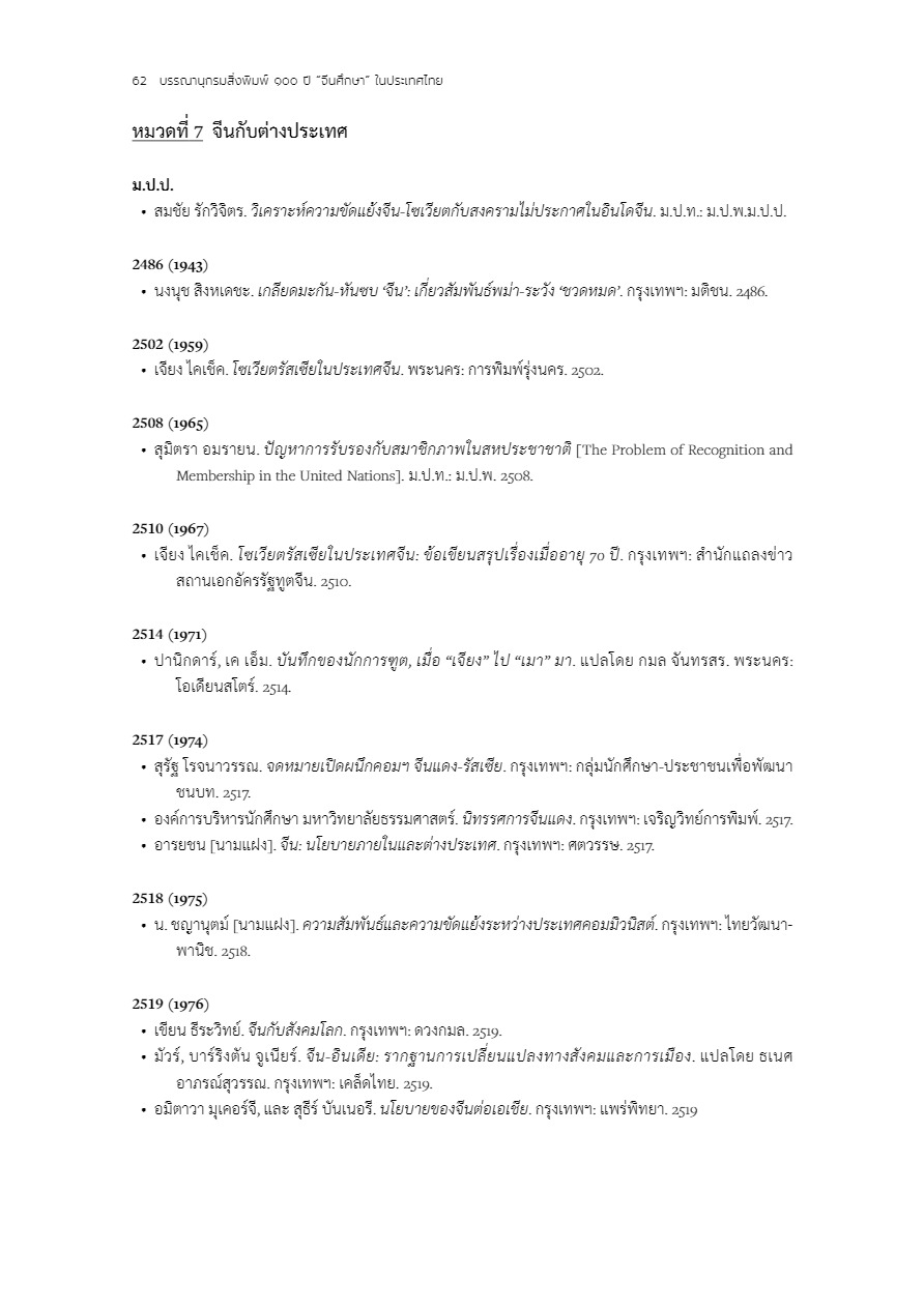 บรรณานุกรมสิ่งพิมพ์ 100 ปี “จีนศึกษา” ในประเทศไทย
