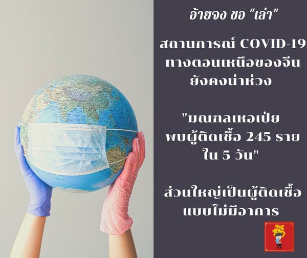 โดยรอบ 5 วันที่ผ่านมา มีรายงานผู้ติดเชื้อรายใหม่ในมณฑลเหอเป่ย 245 ราย แบบมีอาการ 90 ราย และแบบไม่มีอาการ 155 ราย (ในสื่อของจีน รายงานว่า 234 ราย แต่จากการรวมตัวเลขจริงๆ พบว่า มี 245 ราย)