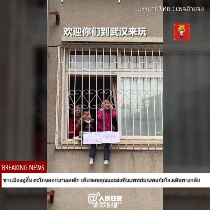 ชาวเมืองอู่ฮั่น ตะโกนออกมานอกตึกที่พักอาศัย เพื่อขอบคุณและส่งทีมแพทย์มณฑลกุ้ยโจวเดินทางกลับ
