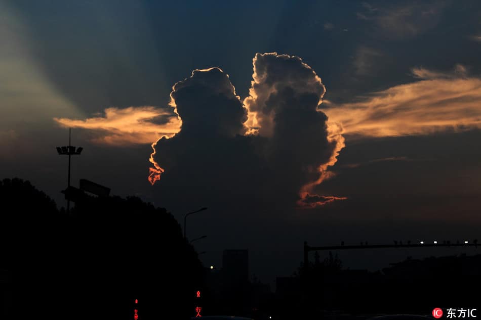 รูปก้อนเมฆคล้าย “คู่รักกำลังจูบกัน” ณ ท้องฟ้าเมืองเซ่าซิง มณฑลเจ้อเจียง ประเทศจี…