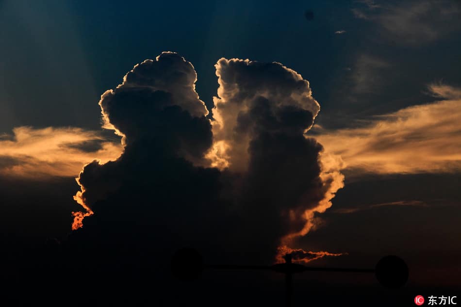 รูปก้อนเมฆคล้าย “คู่รักกำลังจูบกัน” ณ ท้องฟ้าเมืองเซ่าซิง มณฑลเจ้อเจียง ประเทศจีน