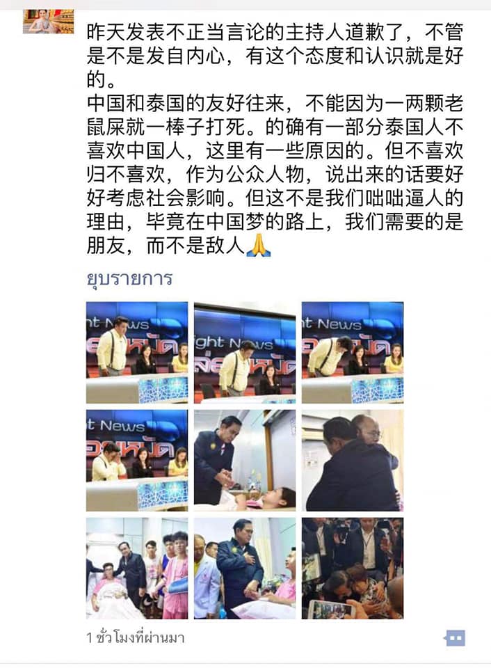 หลายคนเริ่มเข้าใจและในโซเชียลจีน กระแสเกี่ยวกับไทยเริ่มมีสถานการณ์ที่ดีขึ้น เริ่มมีคนจีนหลายคนเข้ามาคุยกับอ้ายจงผ่านทางWeiboว่า พวกเขาเข้าใจและรู้ดีว่าคนไทยจำนวนมากเป็นคนดี เขาก็หวังว่าเรื่องที่ยังไม่กระจ่าง จะกระจ่างขึ้นในเร็ววัน พวกเขาอยากรู้สาเหตุที่แท้จริงของเหตุการณ์นี้