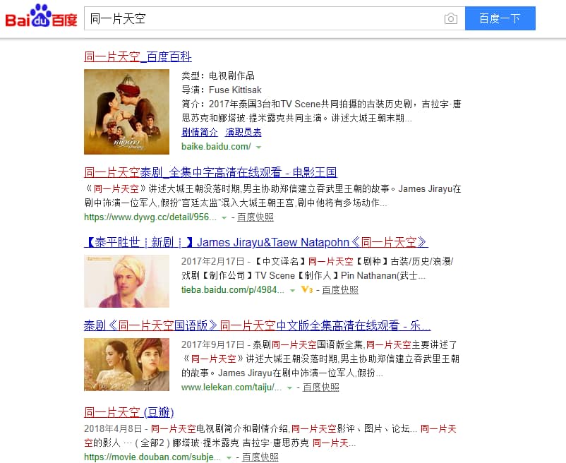 1. หลังละครออนแอร์ไม่นาน มีการค้นหาใน Baidu สำหรับคำว่า 同一片天空 และ 同一片天空泰剧