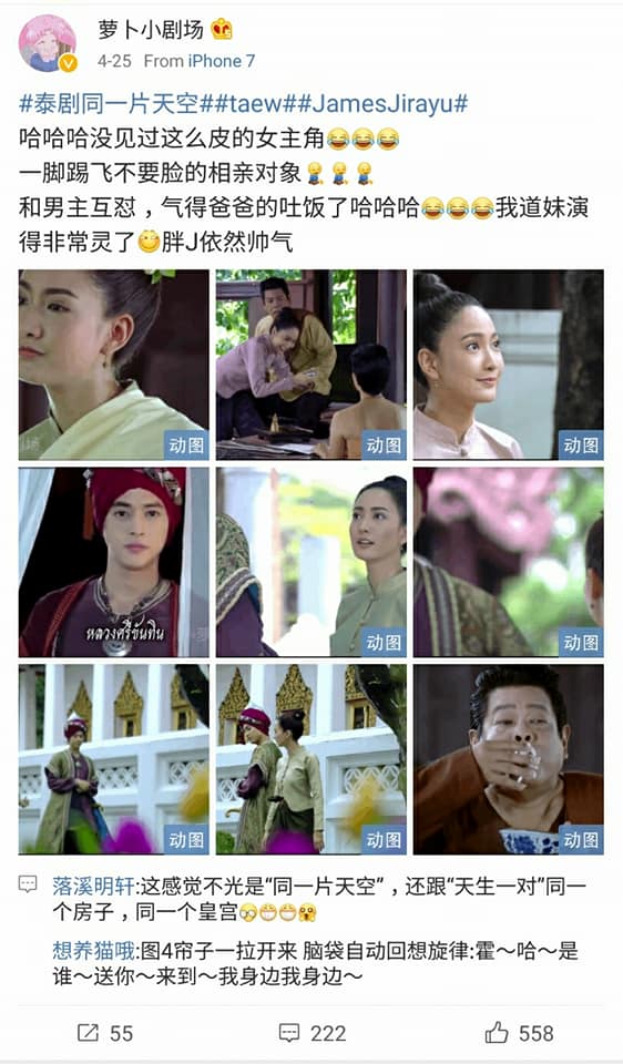 3. แต้วและเจมส์จิ จากเดิมที่มีแฟนคลับในจีนพอสมควร ก็น่าจะเริ่มมีมากขึ้น โดยWeiboของทั้งคู่ ณ ตอนนี้ ใกล้จะมีคนติดตามหนึ่งแสนคนแล้ว