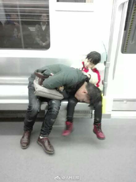 ภาพโมเม้นประทับใจของพ่อลูกชาวจีนคู่หนึ่ง บนรถไฟใต้ดินเมืองหนานชาง มณฑลเจียงซี ที่กำลังเป็นกระแสในโลกออนไลน์จีนตอนนี้