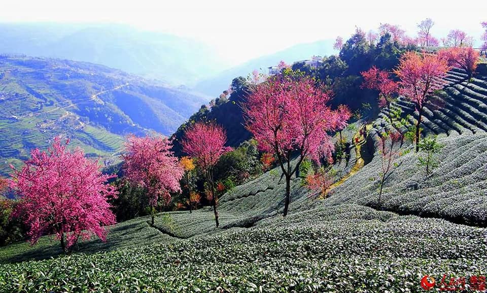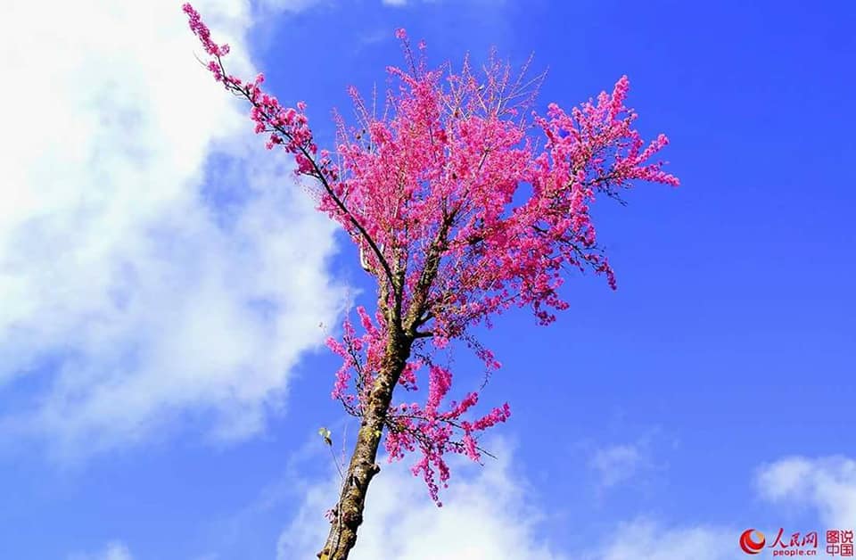 #ยามดึก ดอกซากุระบานสะพรั่งรับลมหนาว ณ ภูเขาอู๋เลี่ยง ในมณฑลหยุนหนาน (ยูนนาน)