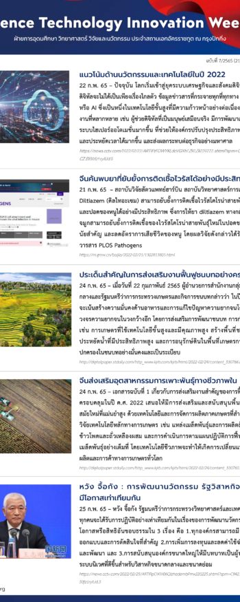 ความร่วมมือด้านวิทยาศาสตร์ เทคโนโลยี และนวัตกรรมไทย – จีน ความร่วมมือระดับรัฐบาล ประเทศไทยและสาธารณรัฐประชาชนจีนมีกรอบความร่วมมือในระดับรัฐบาลทั้งสิ้น 2 กรอบ (1) ความร่วมมือภายใต้คณะกรรมการร่วมระดับรัฐมนตรีว่าด้วยความร่วมมือทางวิทยาศาสตร์และวิชาการ (…